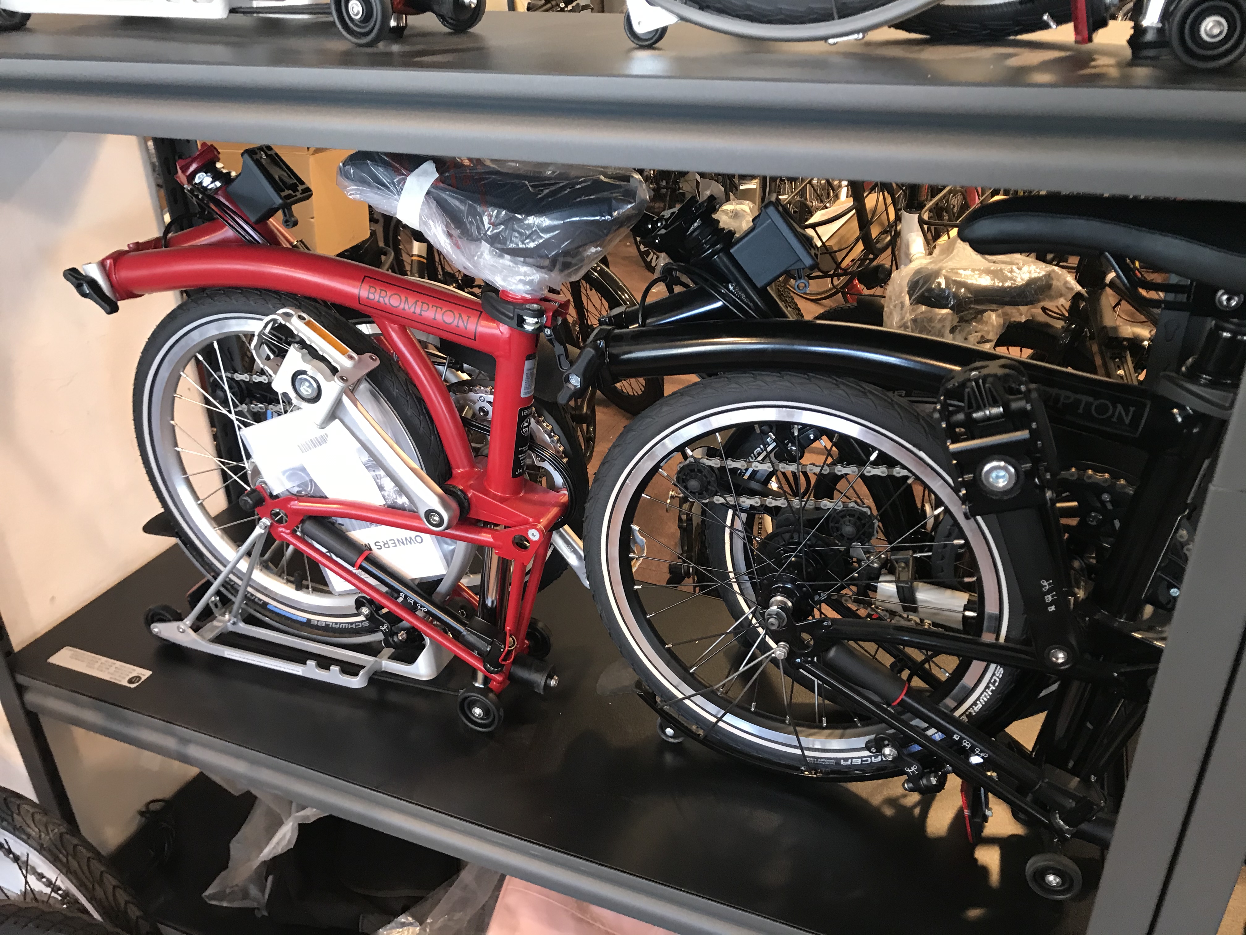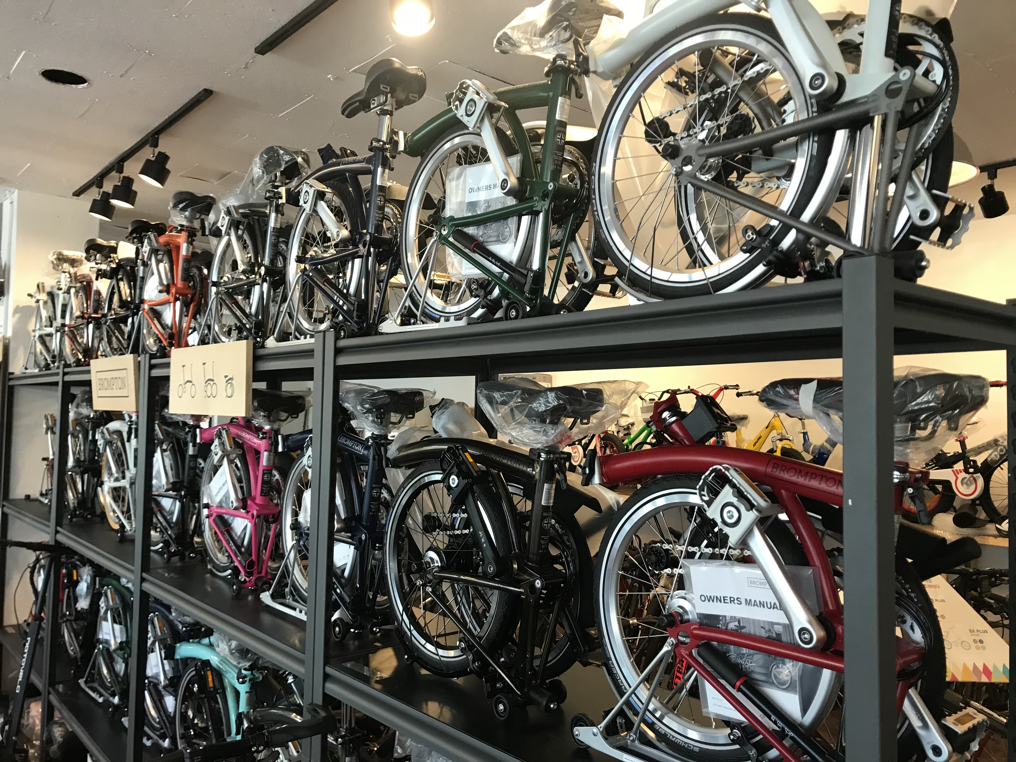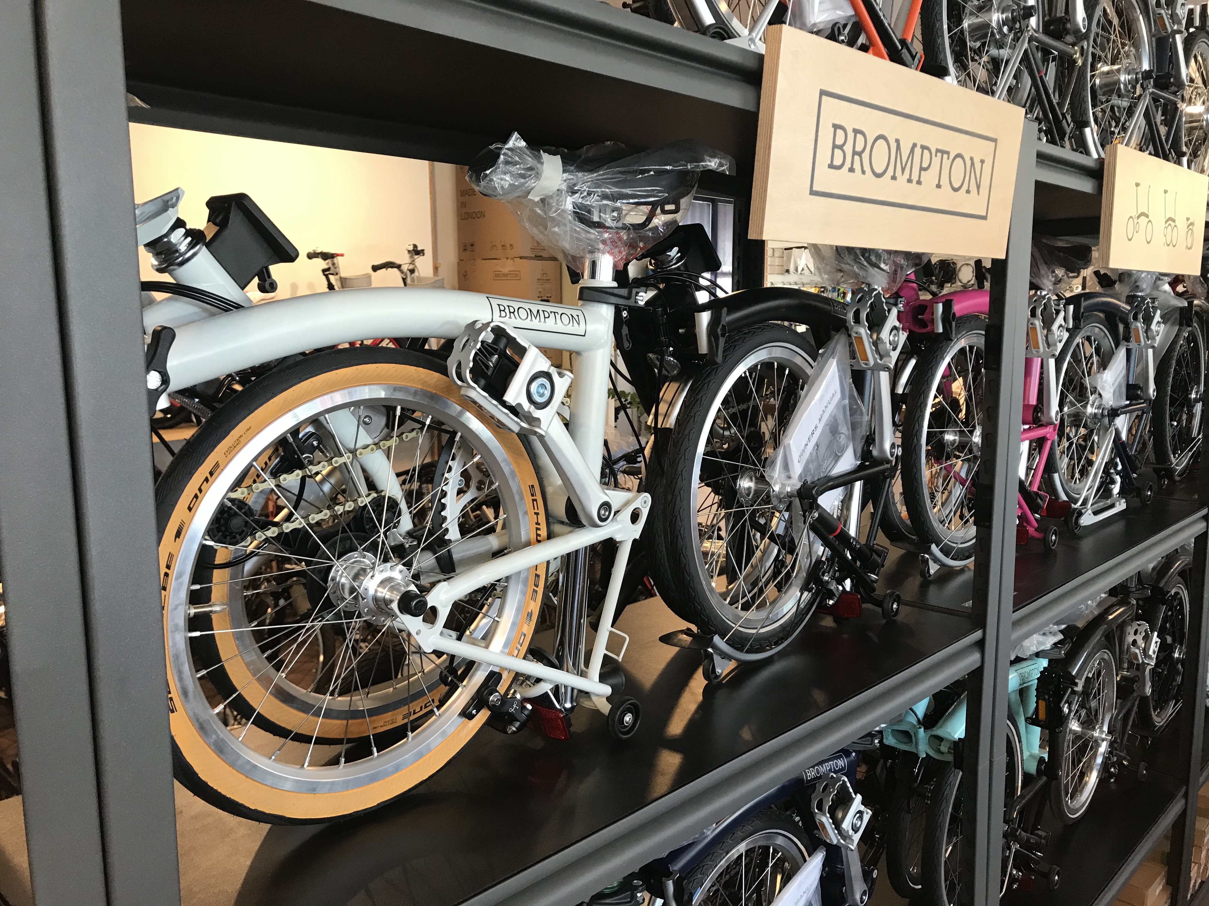 브롬톤 외에도 티티카카 제품들, 어린이 자전거, 전기자전거 들이 판매대기를 하고 있습니다.