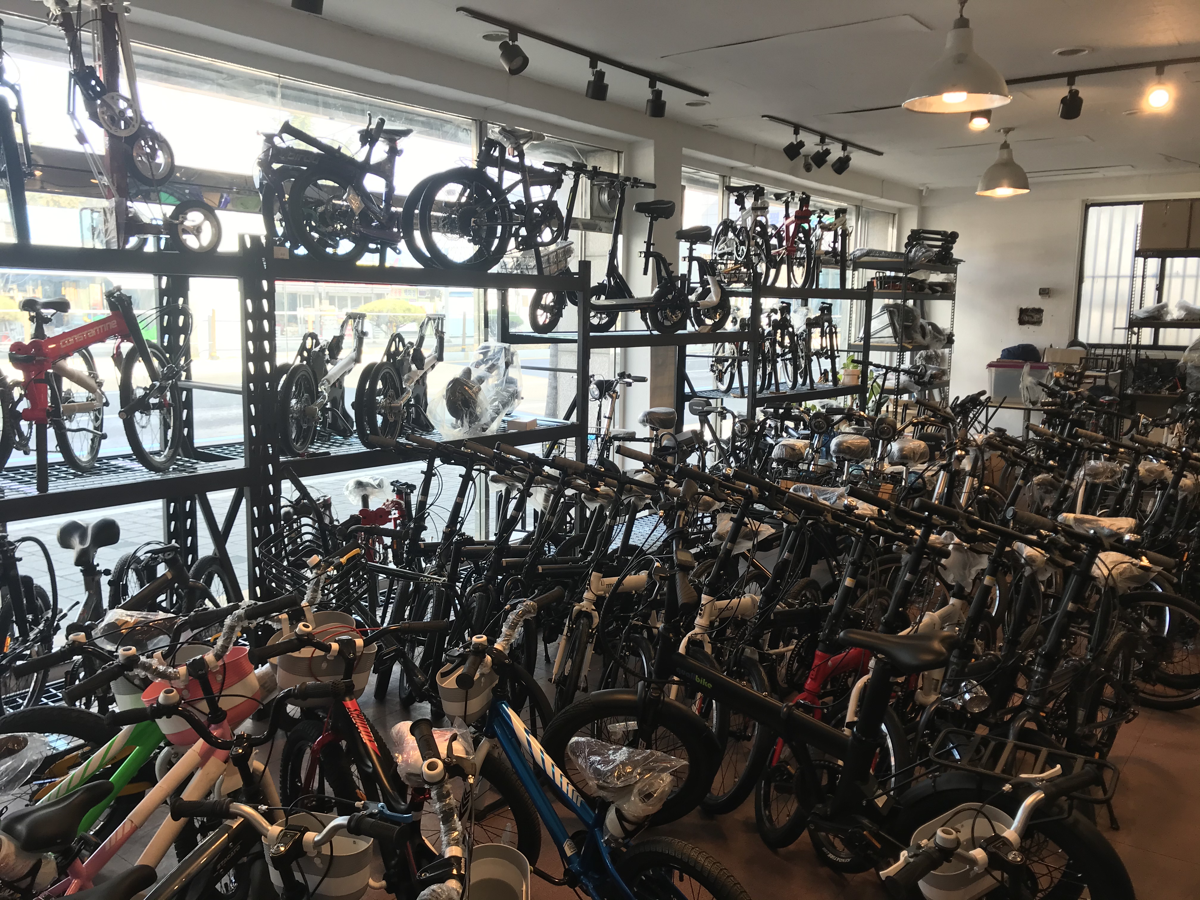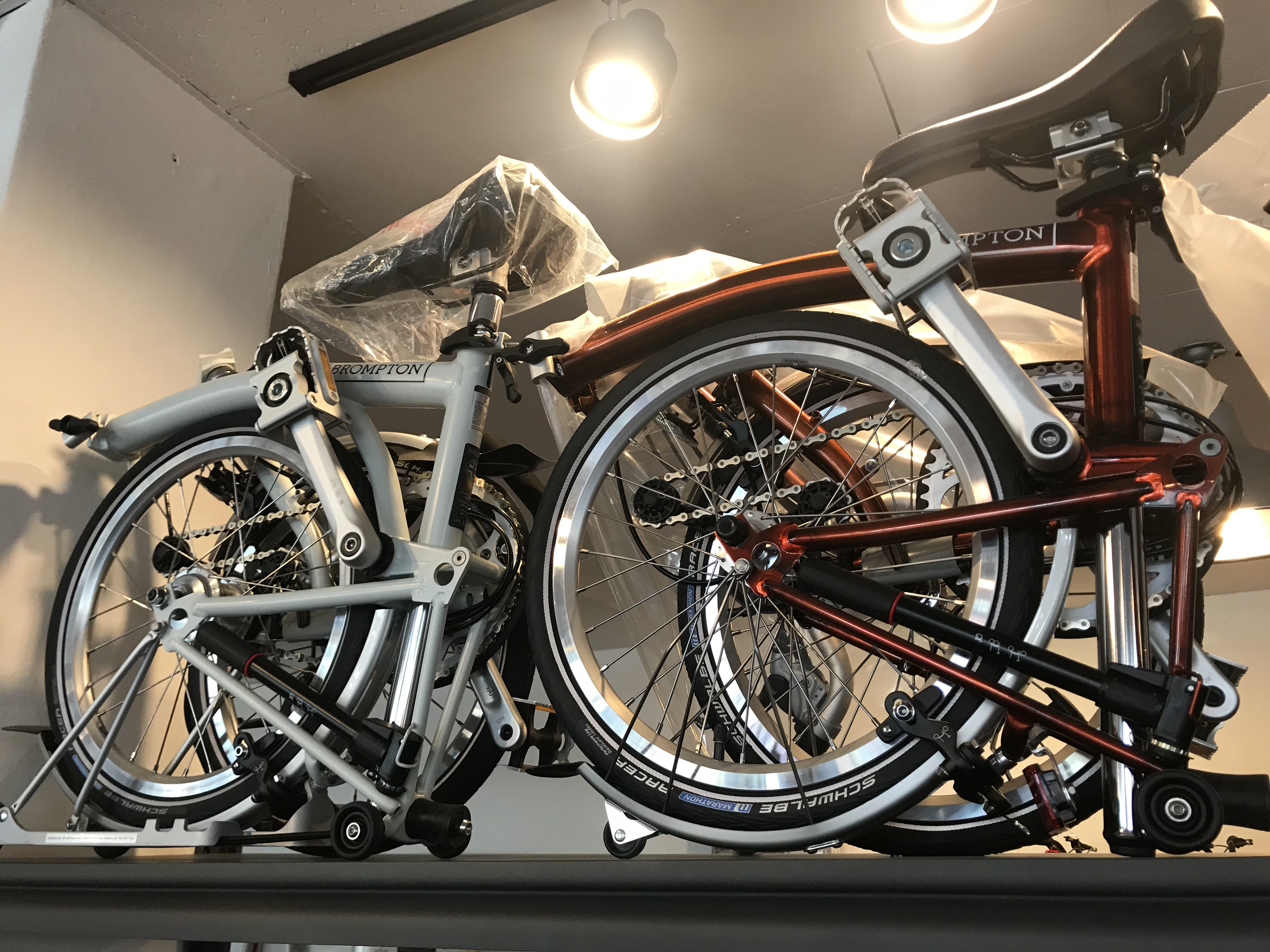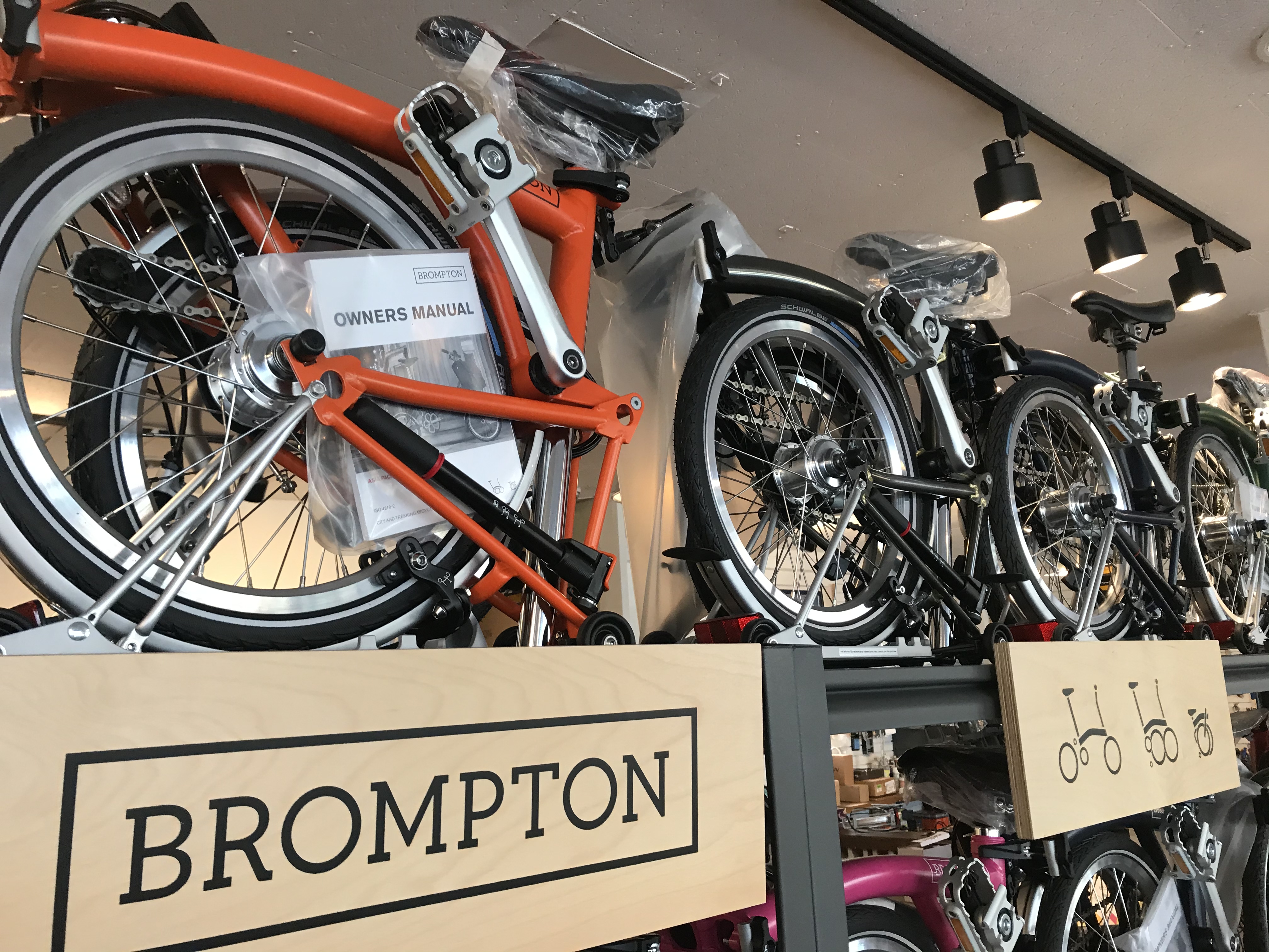브롬톤 외에도 티티카카 제품들, 어린이 자전거, 전기자전거 들이 판매대기를 하고 있습니다.